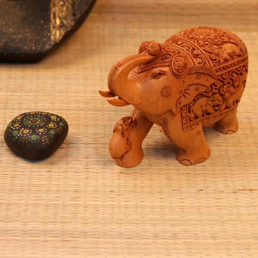 WOODEN ELEPHANT WITH CALF