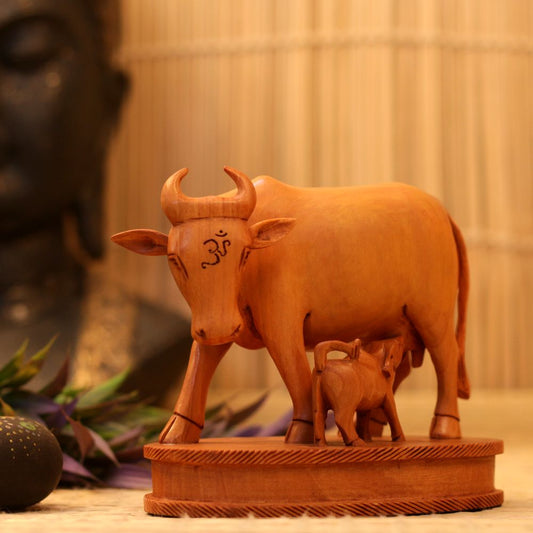 WOODEN HANDICRAFTD COW - CALF 6"