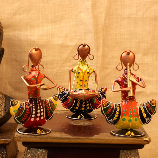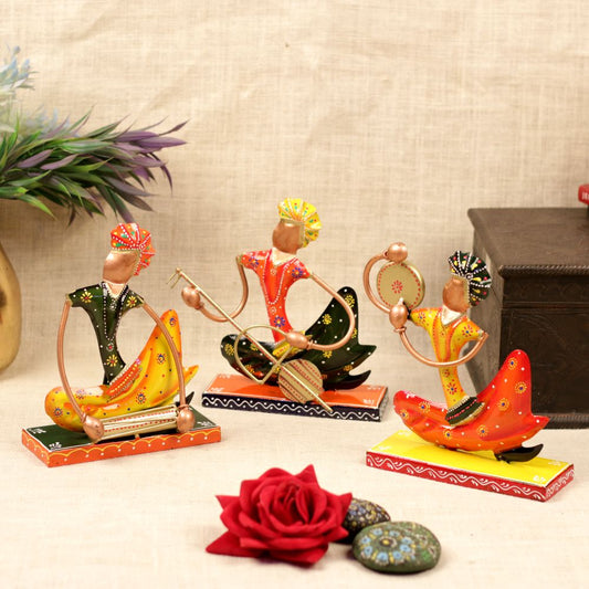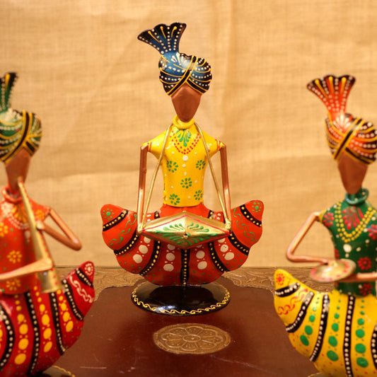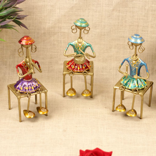 IRON PAINTED MUSICAL SITTING MAN MINI SET OF 3