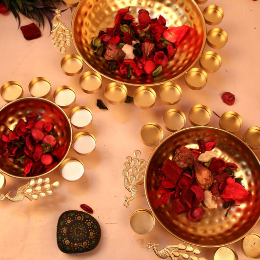 DECORATIVE BOWLS - URLI - PEACOCK T-LIGHT URLI SET Of 3