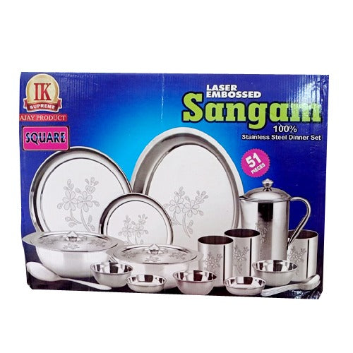 Sangam Stainless Steel Lazer embossed Dinner Set - 51 Pieces