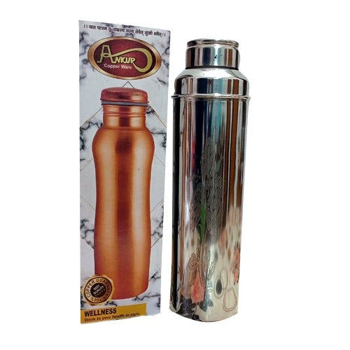 Water Bottle Combo Stainless Steel Outer with Lazer Embossed and Inside Pure Copper
