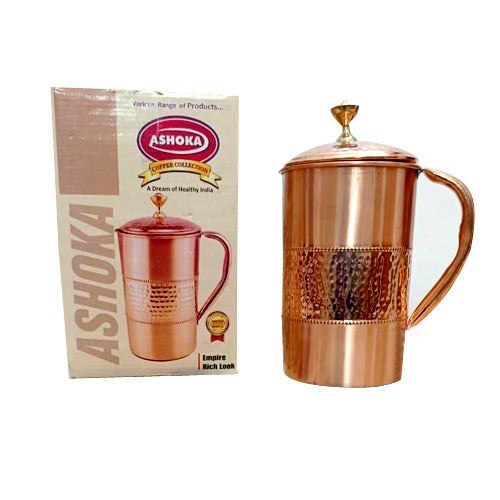Copper Handcrafted Hammered Copper Water Jug, 1.5 L Jug with a Lid for Daily Use